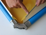 Below is a video showing how our Newman Mesh Snap Panels simply “snap” into the frame in 10 seconds or less while keeping the frame flat after stretching.