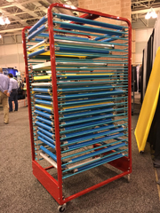 The dual-durometer Shelve Edge Protector ensures long lasting protection to your stretched screens. Too often, cheap racks and carts cause screens to tear from unprotected metal or wood shelves as they slide in and out of the racks or carts. Protect your investment with the Newman Roller Carts and Racks.